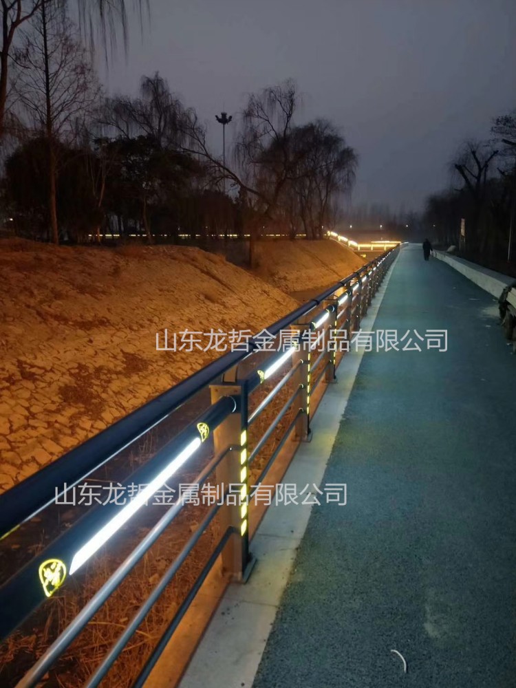 燈光護欄是結合了城市設施實用功能和藝術的可觀賞功能為一體的成功產品,亦可結合地方文化與特色于一體,實現燈光與護欄的完美結合。解決了燈具的隱藏問題,立柱和橫梁上設計的燈光,光度柔和,有冷暖色可選,安裝方便,對人行道照起到很好的輔助作用,用在河道不僅對游人起到了安全警戒和引導功能,外側燈光剛能更好對周圍景色加以點綴!導功能,外側燈光剛能更好對周圍景色加以點綴。